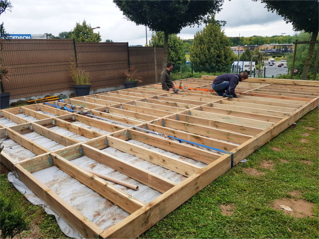 Réalisation d’une roue de moulin à Thenelles (Aisne) dans les Hauts-de-France. Réalisés en 2021.Terrasse Les 3 Brasseurs à Saint-Quentin