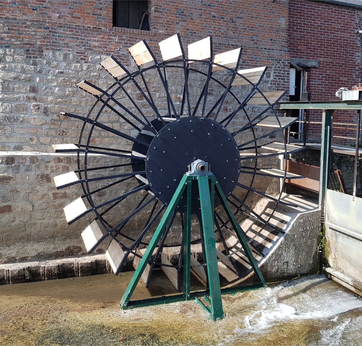 Pose d'un siphon dans les Hauts-de-France. Réalisée en 2021.Roue de moulin à Thenelles