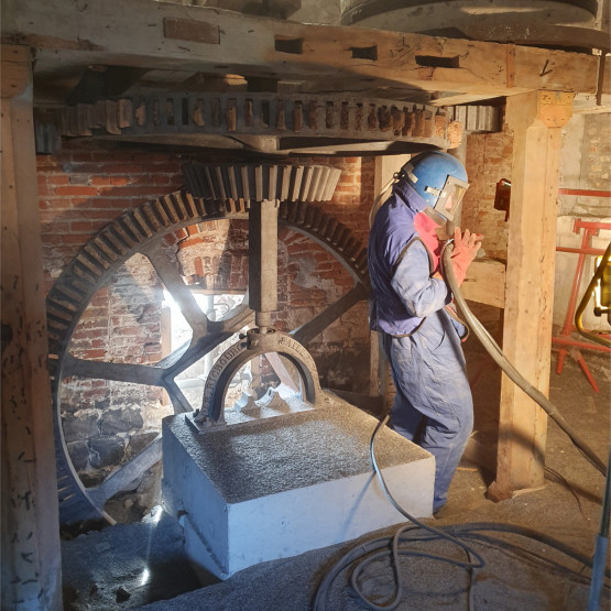 Sablage d’un mécanisme de moulin à Thenelles